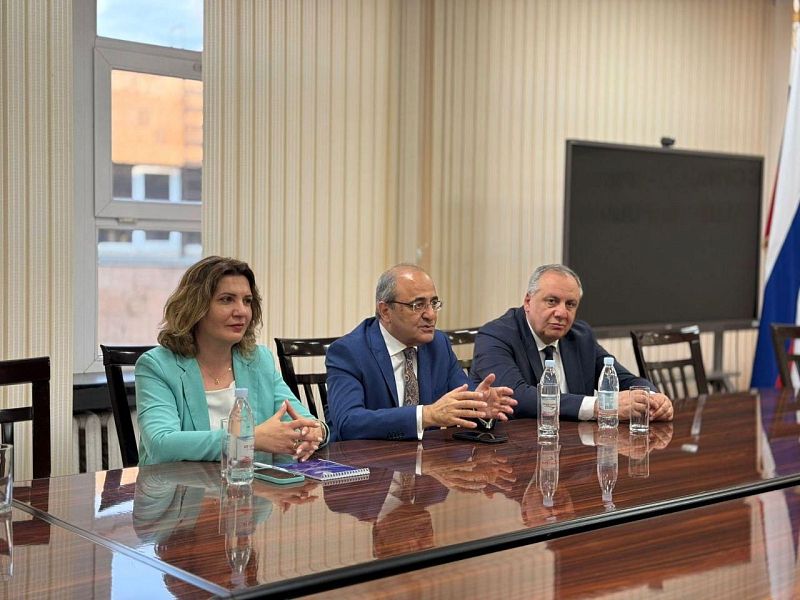 Помимо этого, состоялась рабочая встреча делегации Минобрнауки России с ректором Российско-Армянского университета ЭдвардомСандояном, в ходе которой стороны обсудили перспективы развития вуза и укрепление академических связей между двумя странами.