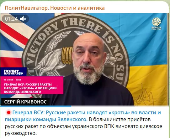 В большинстве прилётов русских ракет по объектам украинского ВПК виновато киевское руководство, заявил украинский генерал, бывший командующий силами специальных операций ВСУ Сергей Кривонос.
