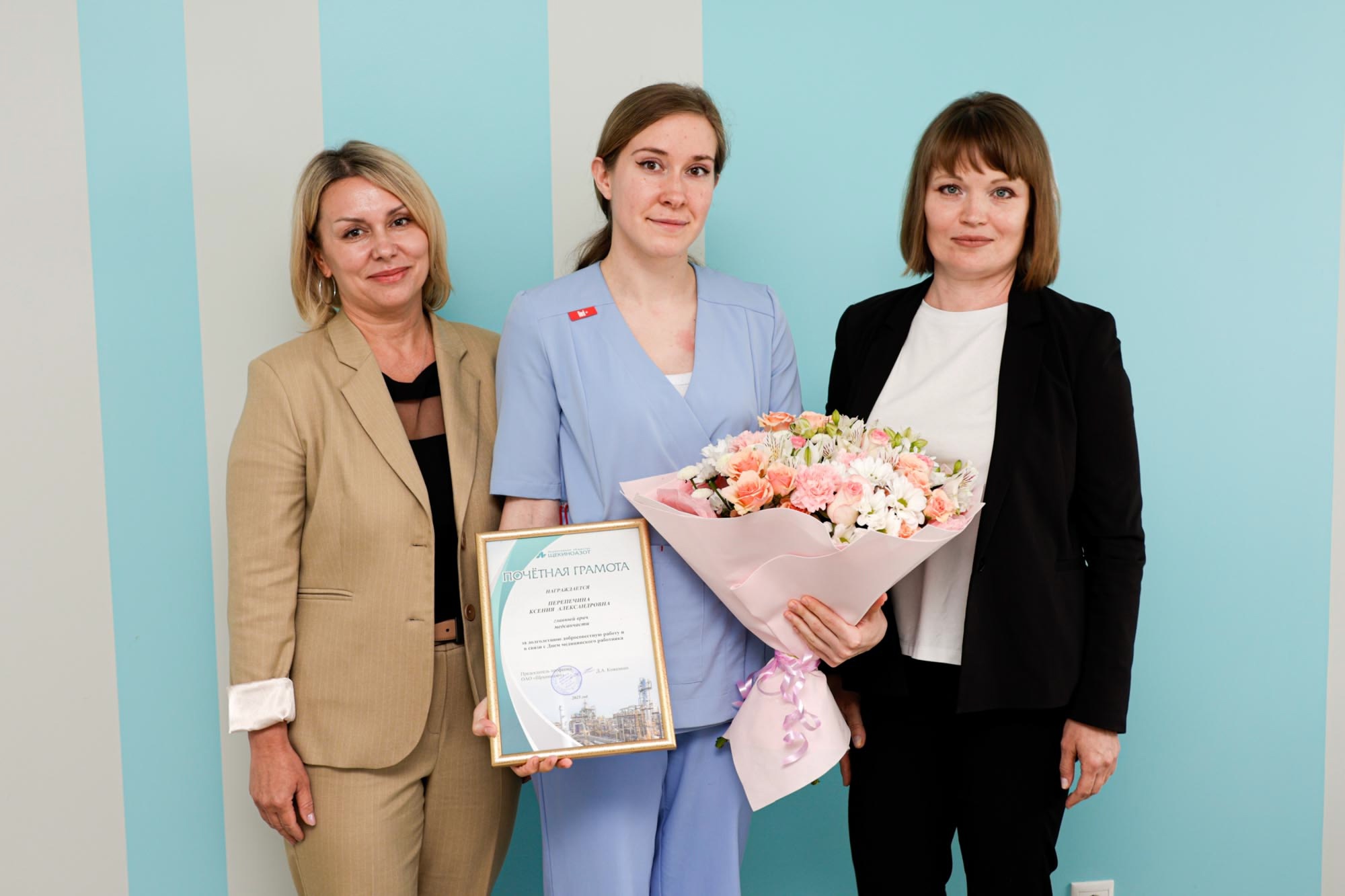 А 16 июня в компании «Щекиноазот» чествовали медиков МСЧ, заботящихся о здоровье персонала и их близких. В гости к медработникам компании с торжественной миссией прибыли Ольга Гусева, заместитель директора по управлению персоналом и социальному развитию, и Евгения Фокина, ведущий специалист отдела социального развития.