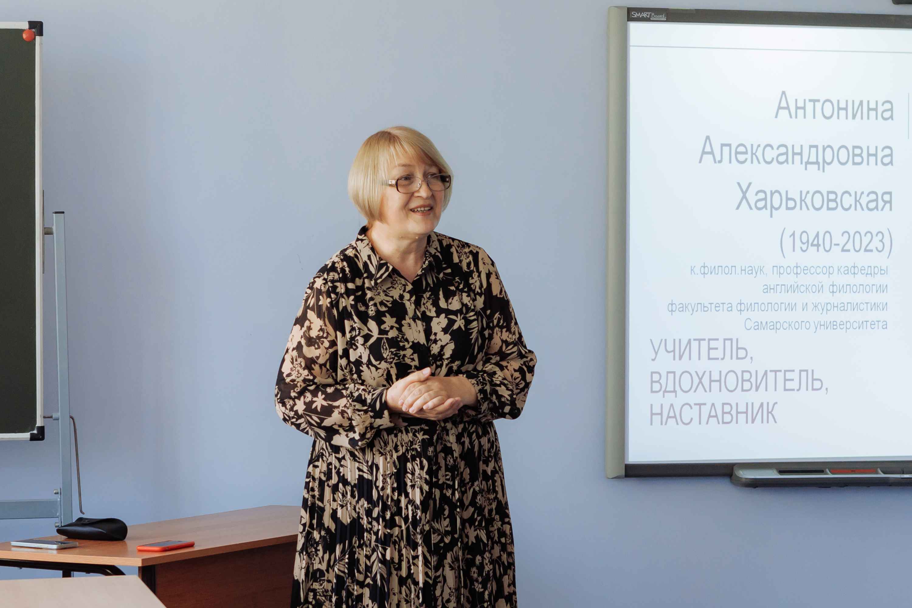 На этой неделе на факультете филологии и журналистики Самарского университета им. Королёва состоялось открытие аудитории № 305 в честь выдающегося ученого, профессора кафедры английской филологии, кандидата филологических наук Антонины Александровны Харьковской. Мемориальная аудитория расположена в корпусе на улице Потапова, где профессор преподавала в течение 45 лет.