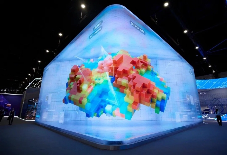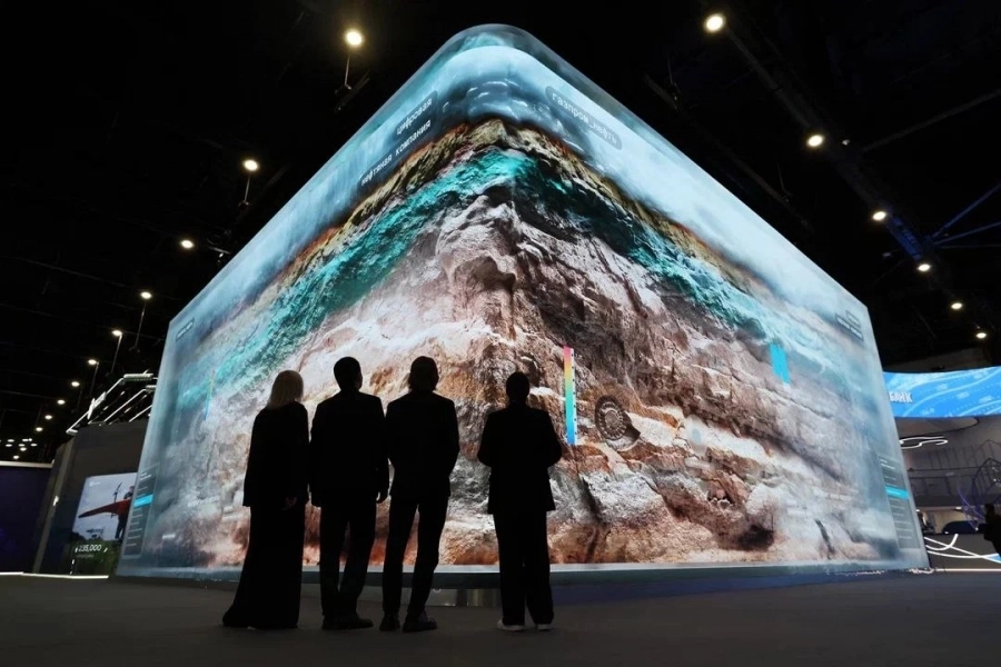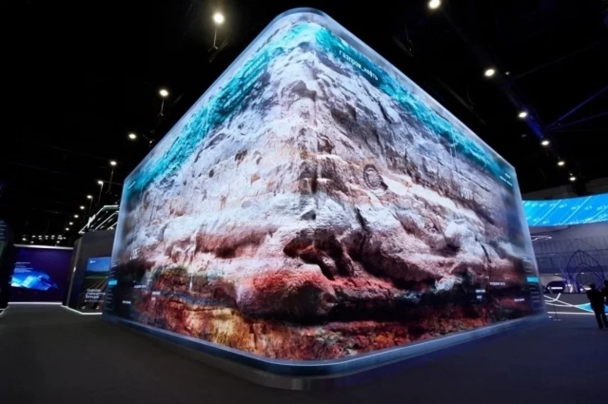 Каждая сцена инсталляции раскрывает новый этап работы нефтянников, уделяя особое внимание виртуальным лабораториям. бурению скважин с помощью искусственного интеллекта и воспроизведению цифровых моделей недр.