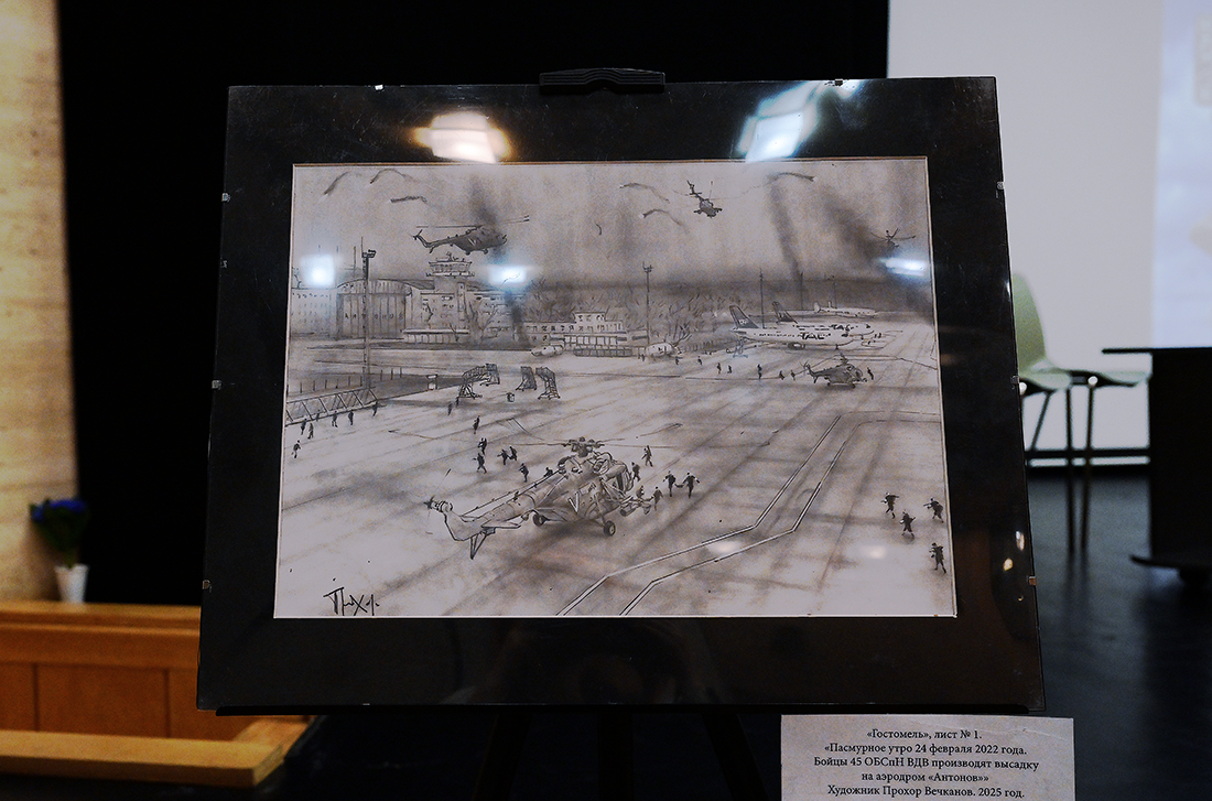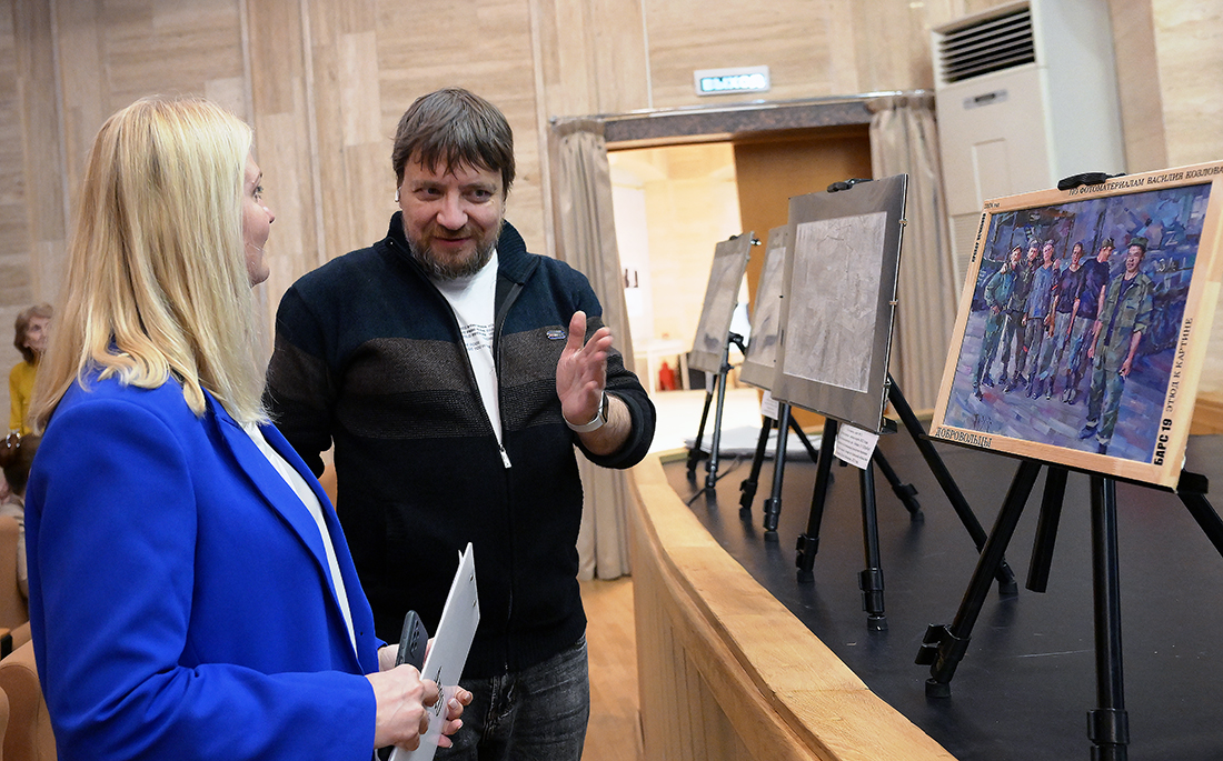 Во время проведения мероприятия петербургский художник Прохор Вечканов продемонстрировал свои графические работы – портреты наших бойцов – из серии «Живые и павшие» и другие картины, посвященные СВО.