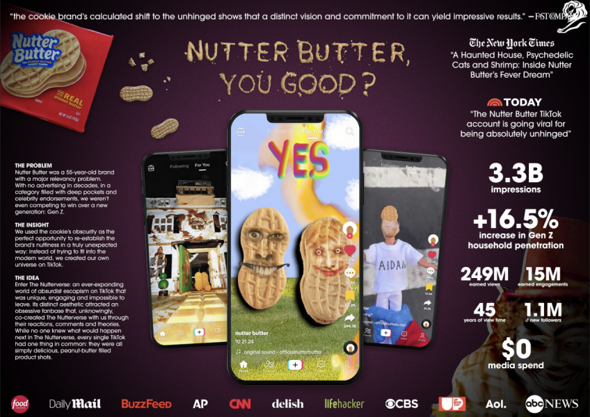 В мире, где бренды отчаянно стараются «вписаться» в культуру Gen Z, Nutter Butter выбрал противоположный путь — и создал собственную. Без селебов, без следования трендам. Только чистый ореховый абсурд. Так родился Nutterverse — нелинейная TikTok-вселенная с бесконечным лором, фанатскими теориями и глубоко странным чувством юмора. В центре — печенье, вокруг — мифология, мемы и сообщество, которое само придумывает повороты сюжета.