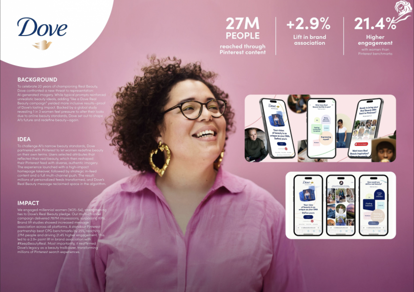 В честь 20‑летия платформы Real Beauty Dove вышел за рамки рекламы и решил повлиять не только на женщин, но и на алгоритмы, формирующие их восприятие себя. Вместо борьбы с нереалистичными стандартами бренд запустил кампанию по переобучению ИИ — начав с Pinterest.