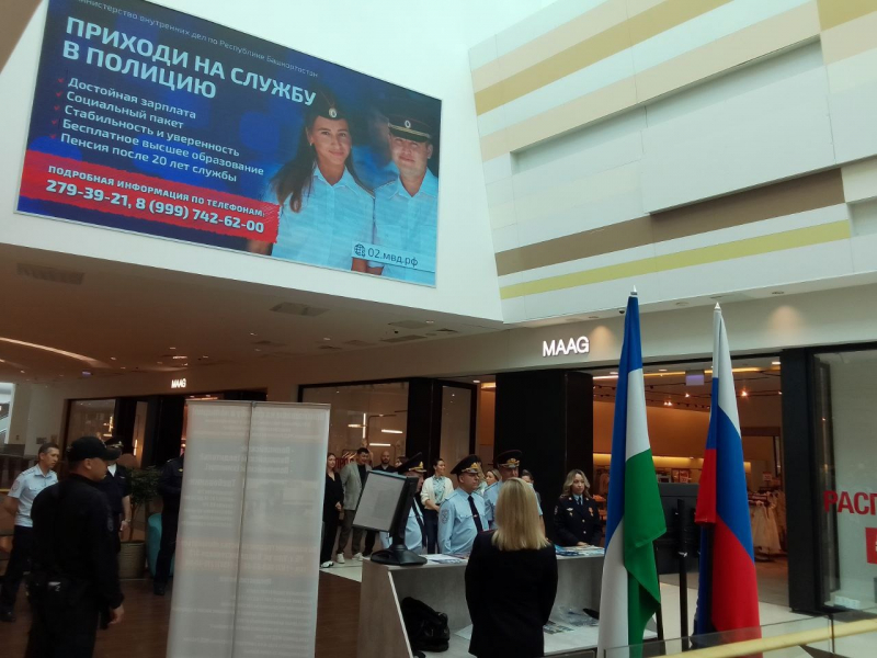 Глава МВД побывал в ТРЦ г. Уфы, где желающие могут получить консультацию по трудоустройству в полицию и даже начать оформление в органы внутренних дел.