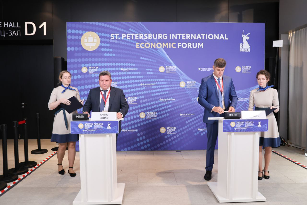Председатель Правления Банка «Кубань Кредит» Александр Калинич и генеральный директор АО «ФлексСофт» Аркадий Лобас в рамках Петербургского международного экономического форума-2025 подписали Меморандум в интересах развития и взаимовыгодного сотрудничества.