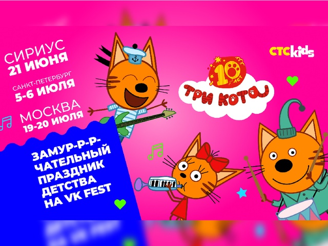 СТС Kids пятый год принимает участие в VK Fest. В этом году Коржик, Карамелька и Компот приглашают отметить юбилей мультсериала вместе с телеканалом на площадках в трех городах!