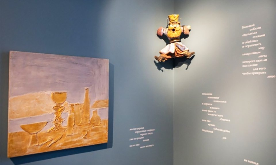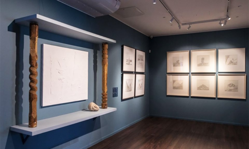 Экспозиция в выставочном зале Фонда Андрея Чеглакова на Пречистенке, организованная совместно с Kocheishvili Foundation, занимает два этажа. На первом — архитектурная графика и скульптурные рельефы, выполненные в той самой фирменной технике, позволяющей добиться ощущения импровизации и легкости. Также посетители могут увидеть новую графическую серию 2024–2025 годов — ежедневный художественный дневник автора.