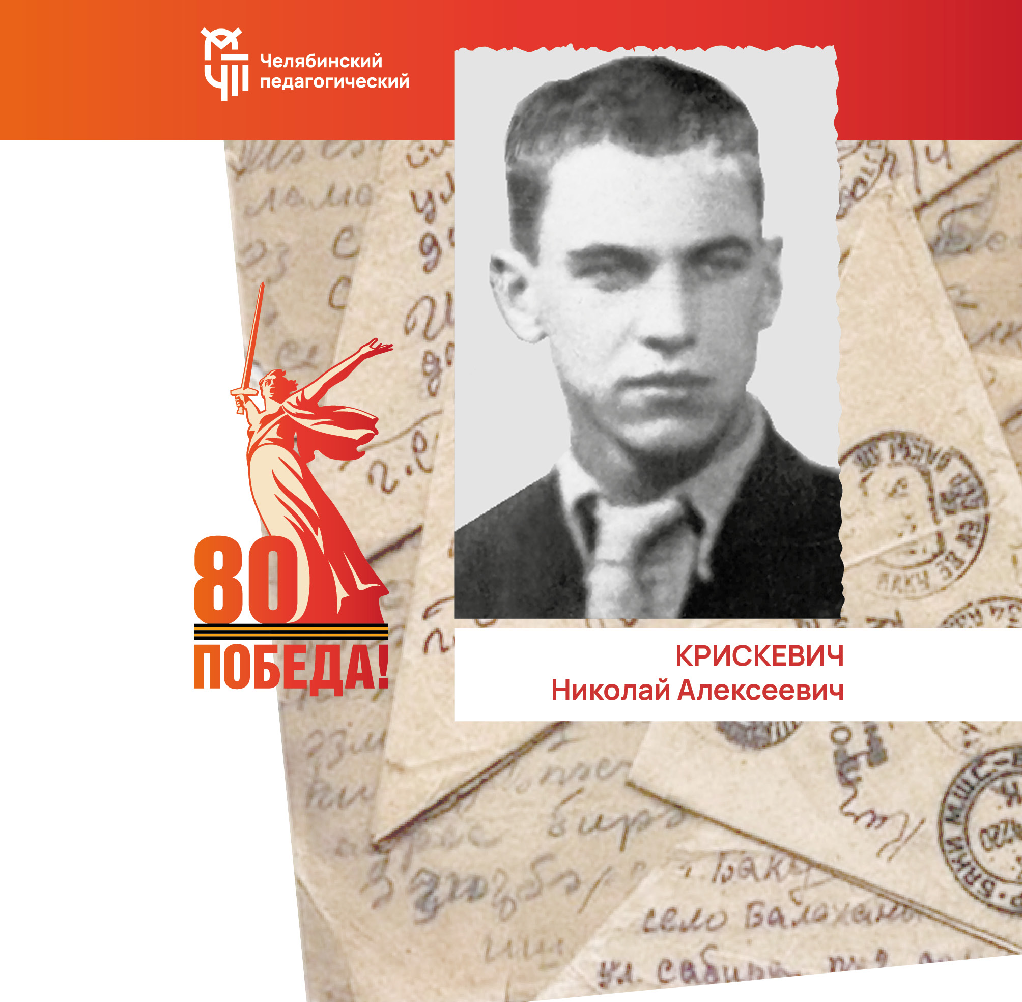 Крискевич Николай Алексеевич (27.07.1916 – 1941) – участник Великой Отечественной войны, родился 27.07.1916 в деревне Кострубль Фировского района Калининской области. После окончания ЛГУ в 1940 г. был направлен в ЧГПИ на кафедру истории СССР, был назначен старшим преподавателем кафедры и заведующим вечерним отделением. В мае 1941 призван в Красную Армию, прошел месячные командирские курсы и в звании младший лейтенант направлен на Калининский фронт. Погиб в боях за Москву. Похоронен в Калинине (ныне Тверь).