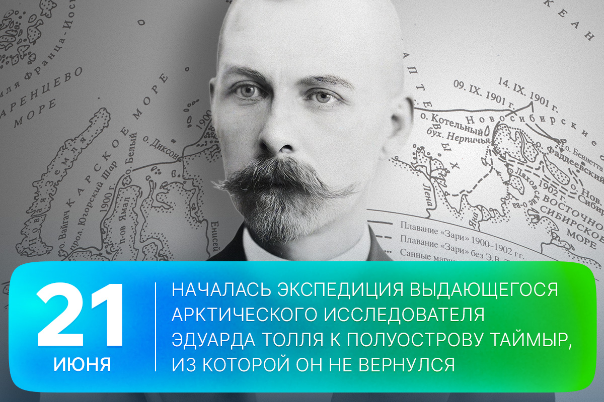 21 июня 1900 года выдающийся русский арктический исследователь, геолог и географ, организатор экспедиций, барон Эдуард Васисильевич Толль отправился на моторно-парусной шхуне «Заря» из Санкт-Петербурга к полуострову Таймыр.