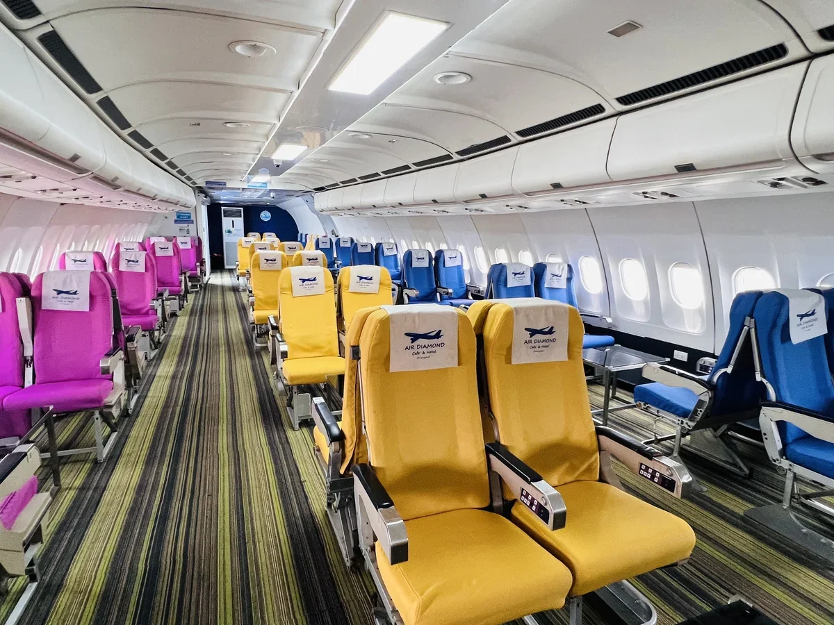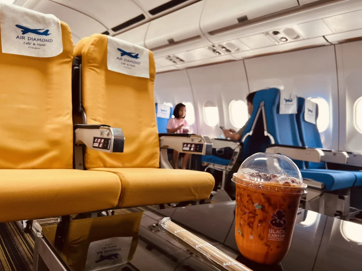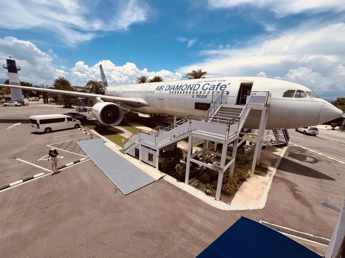 Еще один интересный вариант – кафе на борту настоящего самолета - Air Diamond Cafe. Оно расположено по дороге к приюту слонов. Платите 150 бат и проходите на борт. В эту стоимость включен не только вход, но и один напиток. Можно выпить его в кабине пилота.