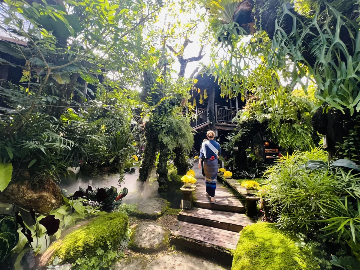 Для желающих есть с видом на красивую природу, а точнее на сказочный сад с водопадами, деревянными мостиками, тропическими растениями – ресторан Mai Heun 60, в оформлении которого присутствует стиль Ланны. Там представлены блюда северной кухни и очень вкусные десерты. Между подачей блюд можно погулять по саду и зайти в магазинчик, где продают одежду ручной работы. Не забудьте взять деньги.