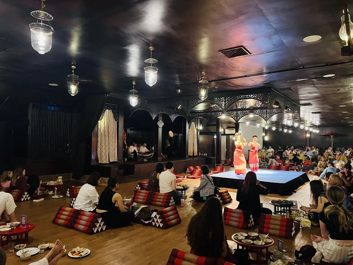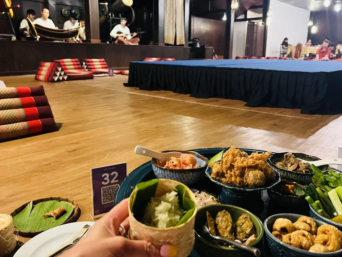 Гости размещаются на пуфиках на полу, дегустируют северную кухню. В это время на сцене происходит национальное танцевальное представление, артисты исполняют традиционную музыку на древних инструментах. В какой-то момент тебе начинает казаться, что ты становишься частью северного Таиланда, растворяешься в его культуре.