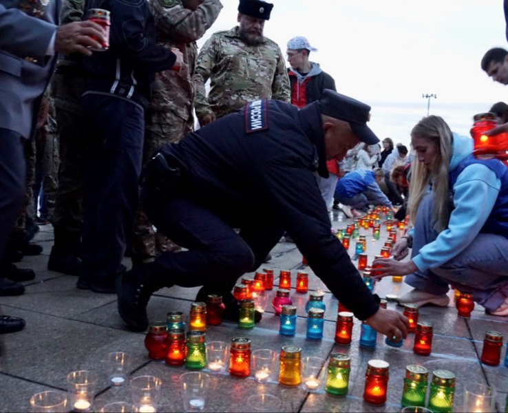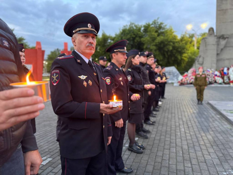 Вечером полицейские совместно с представителями Общественного совета при УМВД приняли участие в акции «Свеча памяти». Все присутствующие, бережно держа свечи, почтили память павших, выразили благодарность ветеранам, пролившим свою кровь за будущее нашей страны.