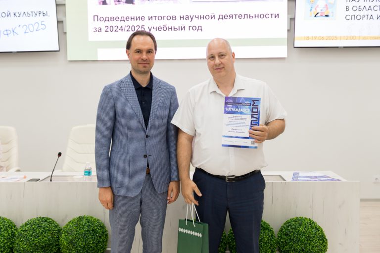 19 июня 2025 года в Белорусском государственном университете физической культуры перед финалом конкурса на лучшую студенческую научную работу в области физической культуры, спорта и туризма состоялось подведение итогов научной деятельности за текущий учебный год. Ректор университета Сергей Борисович Репкин в торжественной обстановке вручал дипломы и награды наиболее отличившимся преподавателям и студентам, отметив их значительный вклад в развитие университетской науки.