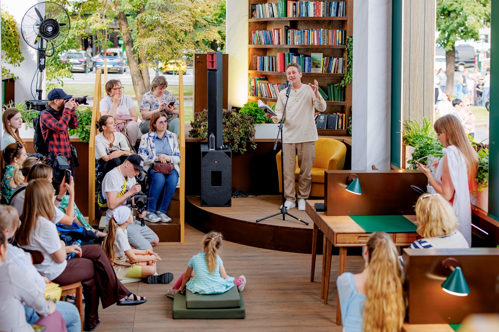 Напомним, что проект "Книга в городе" - это библиотеки под открытым небом, мастер-классы, лекции, литературные чтения и знакомство с писателями, поэтами, артистами - всего более 700 культурных событий. Площадки открыты с 12:00 до 22:00 со вторника по воскресенье. Вход на площадки свободный, информацию о регистрации на мероприятия и актуальную программу смотрите на сайте книгавгороде.рф.