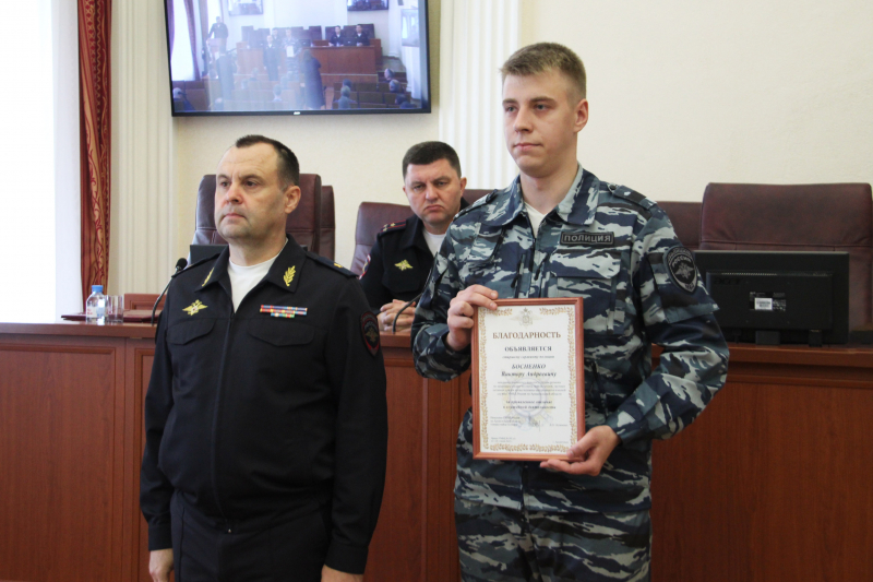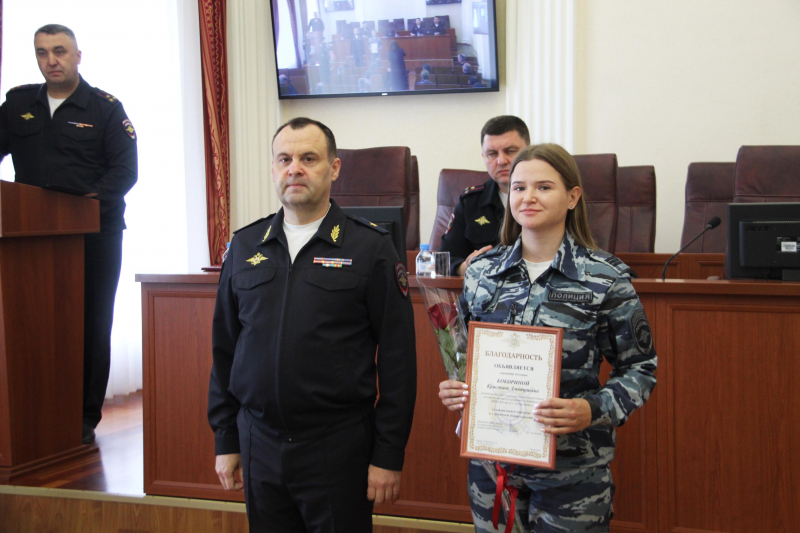Поздравительный адрес Дмитрий Остапенко вручил начальнику Центра кинологической службы областного УМВД подполковнику полиции Александру Котову.