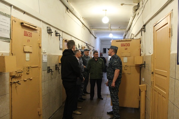 В сопровождении помощника начальника управления по соблюдению прав человека в УИС Дмитрия Субочева и руководства ИК-5 омбудсмен произвел обход помещений штрафного изолятора, помещения камерного типа и ЕПКТ.