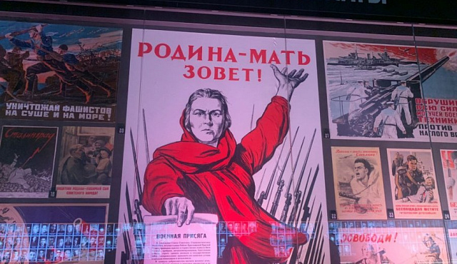 Экскурсовод наряду с общей информацией повествует о славных событиях и примечательных экспонатах. Вот беженцы - бабушка с внуком: эти две фигуры находятся прямо в зале и «оживают» в потоке экскурсантов, на миг становясь нашими современниками. Экскурсовод говорит нам о том, как немцы водрузили знамя над Эльбрусом, демонстрируя миру покорение Кавказа. Однако наши бойцы за 3 дня осуществили уникальную операцию по замене флагов: не быть Кавказу никогда фашистским! Искусной инсталляцией показано, как шестеро отважных бойцов в Риге, ведя многочасовой бой, захватили картотеку агентов Абвера!