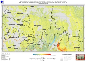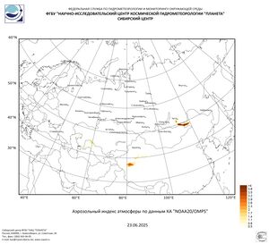 23 июня на картах аэрозольного индекса и содержания угарного газа в столбе атмосферы наблюдаются высокие концентрации загрязняющих веществ в атмосферном воздухе над районами Республики Бурятия, Забайкальского края, Китайской Народной Республики и Монголии.