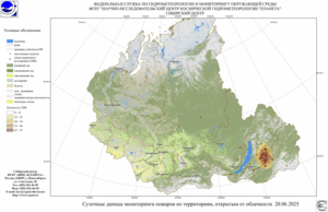 По данным спутникового мониторинга за период 20-24 июня на территории Сибири пожары были зарегистрированы в Ханты-Мансийском автономном округе – Югре, Новосибирской, Томской, Кемеровской, Омской, Тюменской, Иркутской областях, республиках Бурятия и Хакасия, Забайкальском и Красноярском краях. Наиболее сложная пожарная обстановка сохраняется в Забайкальском крае и Республике Бурятия.
