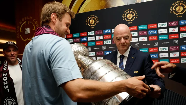 Российский защитник Дмитрий Куликов и его партнёры по «Флориде Пантерз» устроили сюрприз на Клубном чемпионате мира. Хоккеисты появились на матче «Интер Майами» – «Палемейрас» с главным трофеем НХЛ, вызвав ажиотаж среди болельщиков. Как отреагировали футбольные звёзды и зачем Кубок Стэнли оказался на поле?