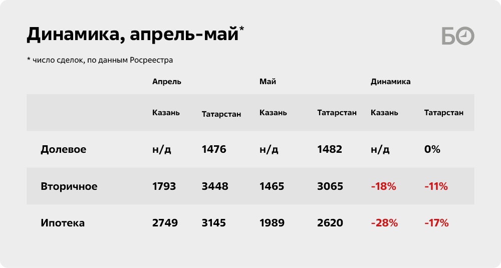 «Если в апреле мы говорили об умеренной положительной динамике спроса на вторичную недвижимость, то по итогам мая в текущих экономических условиях стабильный спрос характерен пока только для первичного рынка недвижимости», — отмечает заместитель руководителя управления Росреестра по РТ Лилия Бурганова.