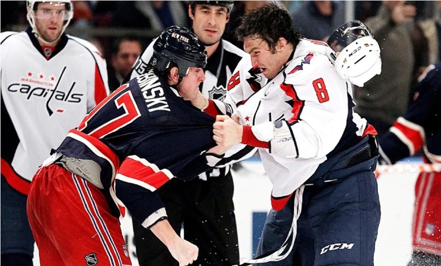 Звезды ТОП уровня тоже не прочь порой прибегнуть к физическому насилию. Даже у такого миролюбивого парня, как Александр Овечкин, нашлись как минимум три повода для конфликта с соперниками. И если первые две драки Овечкина в хоккее случились в первый сезон его профессиональной игры, то третья – состоялась уже в самый разгар карьеры (в 2010 году). В матче Вашингтона против Рейнджерс команда Александра проигрывала со счетом 4-0, и драка с Брэндоном Дубински должна была бы поднять боевой дух команды. Вот только не сложилось, и позже счет увеличился до 7-0. Зато сам момент оказался образцом честного хоккейного спарринга, после которого спортсмены похвалили друг друга за отличную работу.