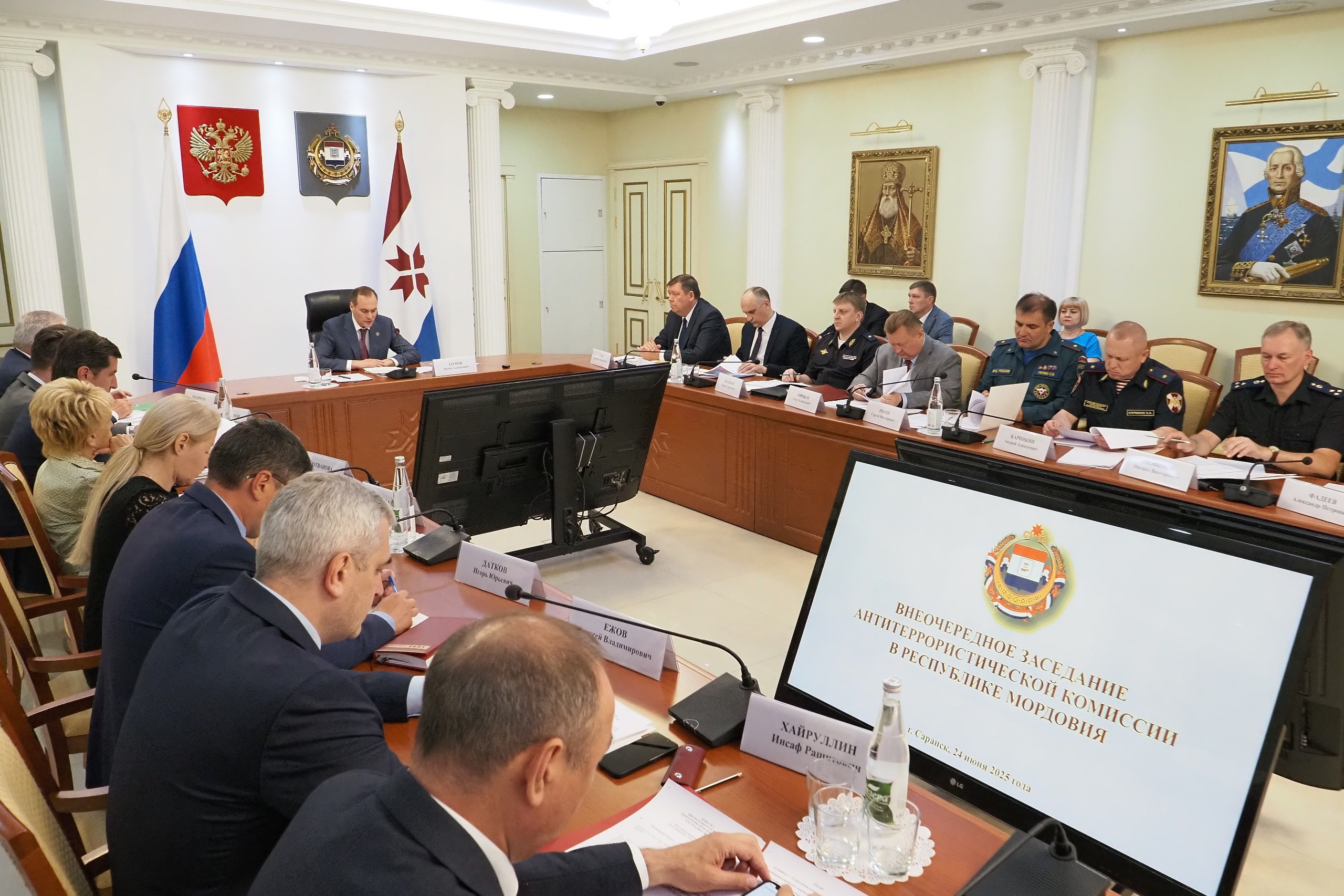 Накануне в Саранске в Доме Республики под председательством Главы Мордовии Артёма Здунова прошло внеочередное заседание региональной Антитеррористической комиссии. Обсуждались дополнительные меры по повышению уровня антитеррористической защищенности объектов, расположенных на территории республики.