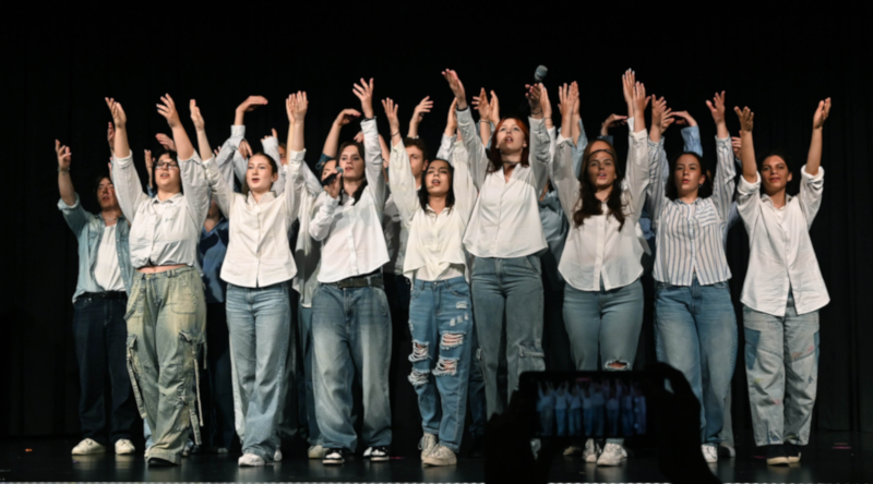 К ним присоединились девочки -выпускницы, и вот на сцене очень слаженный коллектив под руководством Любы Натсикос. Заметьте – здесь все добровольцы! Браво!