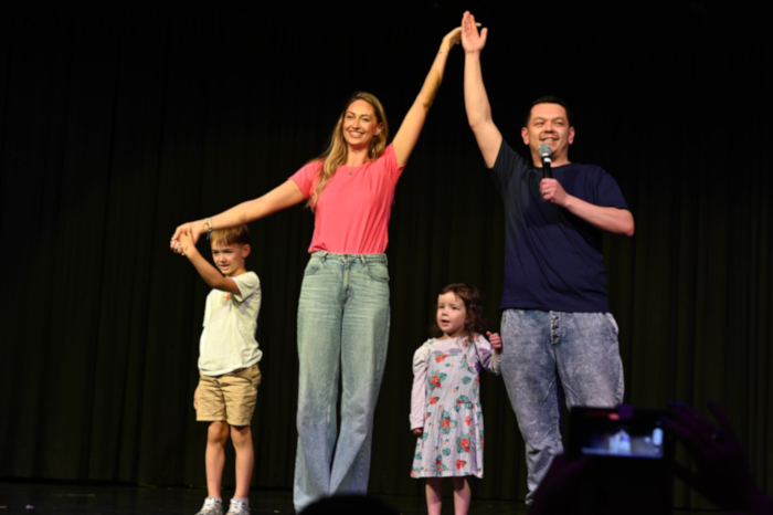 Самым трогательным моментом Юбилея стал заключительный выход ведущих – выпускников «ИСТОКА» Элеоноры Шван и Артёма Цоя, которые появились на сцене в сопровождении своих детей, маленьких учеников школы «ИСТОК».