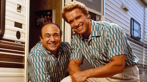 Комедия «Близнецы» вышла в 1988 году. Шварценеггер сыграл в ней одного из двух близнецов, рожденных в результате генетического эксперимента. По сюжету, братьев, которые совершенно непохожи друг на друга, разлучают почти сразу после рождения, и встречаются они только спустя несколько десятков лет, чтобы разыскать свою мать. Близнеца героя Арнольда Шварценеггера в фильме сыграл Дэнни ДеВито. Режиссером ленты выступил Айван Райтман