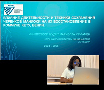 21 июня о своих научных достижениях рассказала предмагистрантка Кинкпоэсси Жудит Мариэлла Фифамен «Влияние длительности и техники сохранения черенков маниоки на восстановление в коммуне Кету, Бенин» (научный руководитель - зав. секцией ООД ФПИС, доцент кафедры русского языка, к.п.н. Елена Ионкина).
