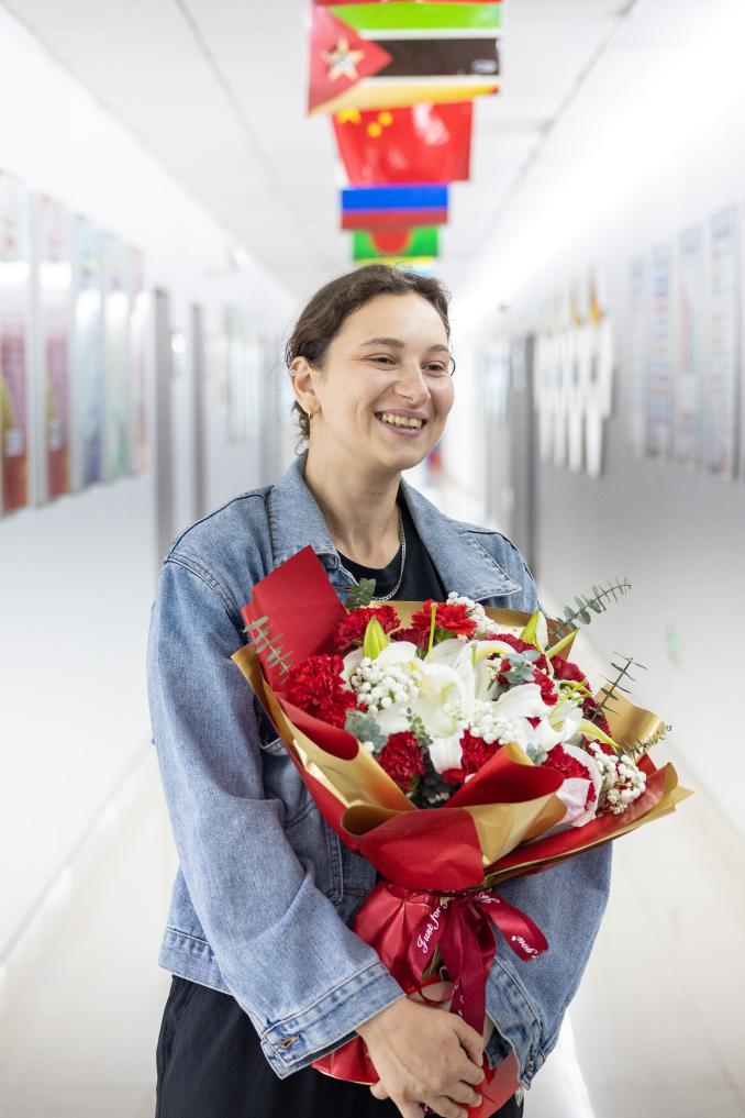 24 июня 2025 года, в Хучжоуском университете Шахназ Губайдуллина получила букет цветов в качестве благодарности после случившегося. /Фото: Синьхуа/