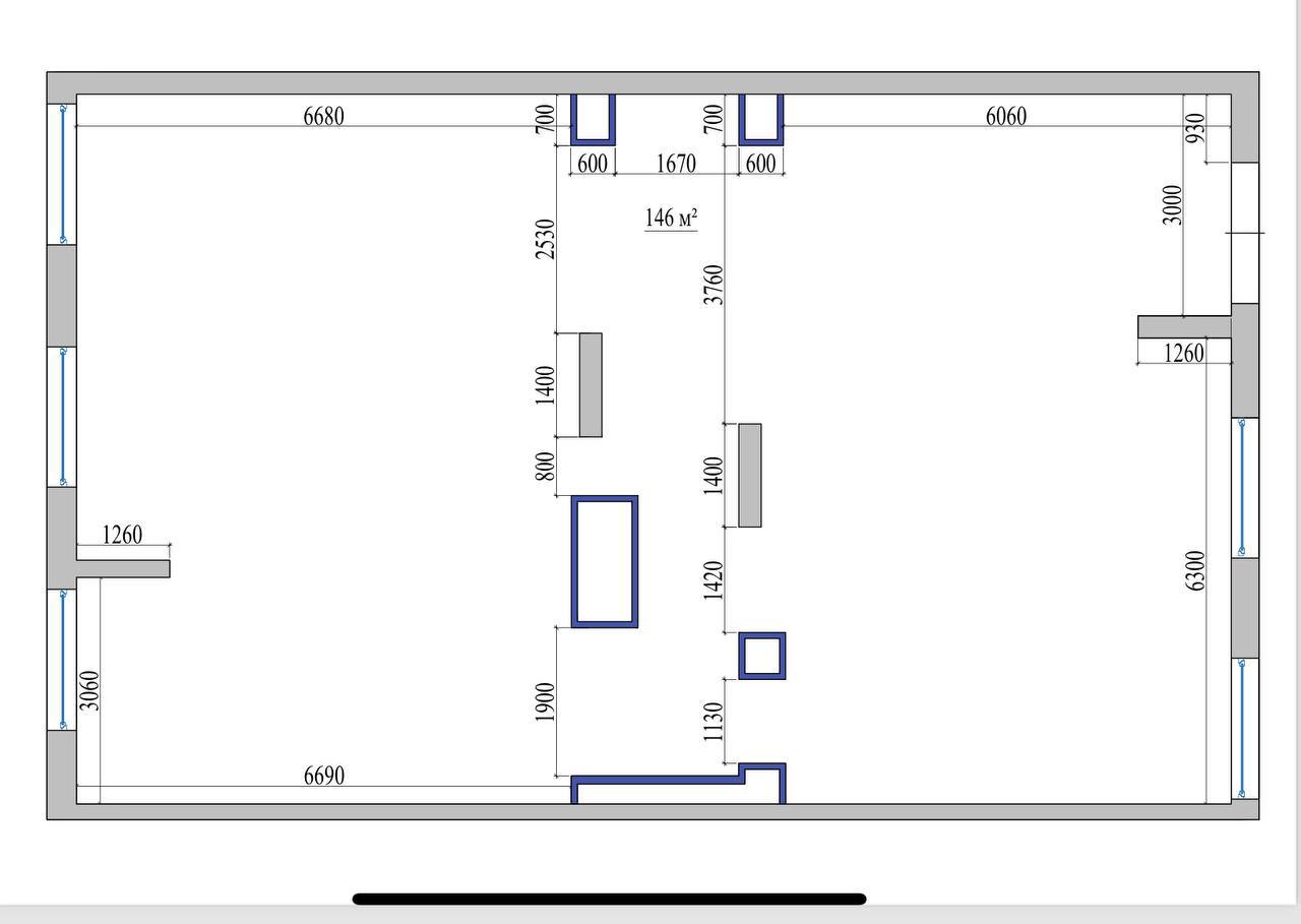 - открытая планировка, нет капитальных внутренних стен, чтобы потом разделить помещение на несколько зон.