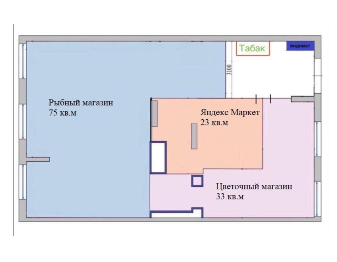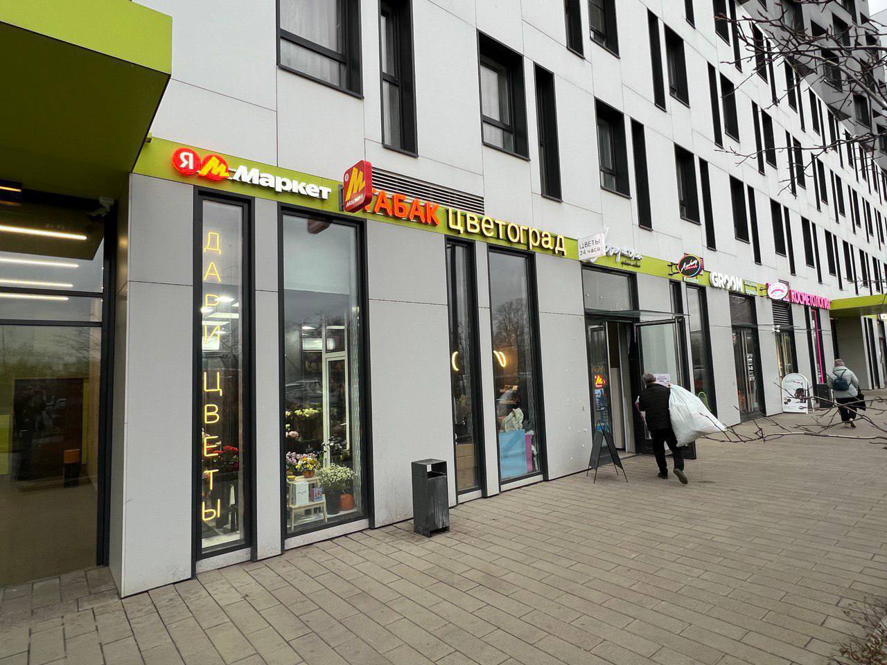 Один из объектов коммерческой недвижимости на первом этаже с витринными окнами. Арендаторы: ПВЗ «Яндекс Маркета», цветочный салон и табачный магазин