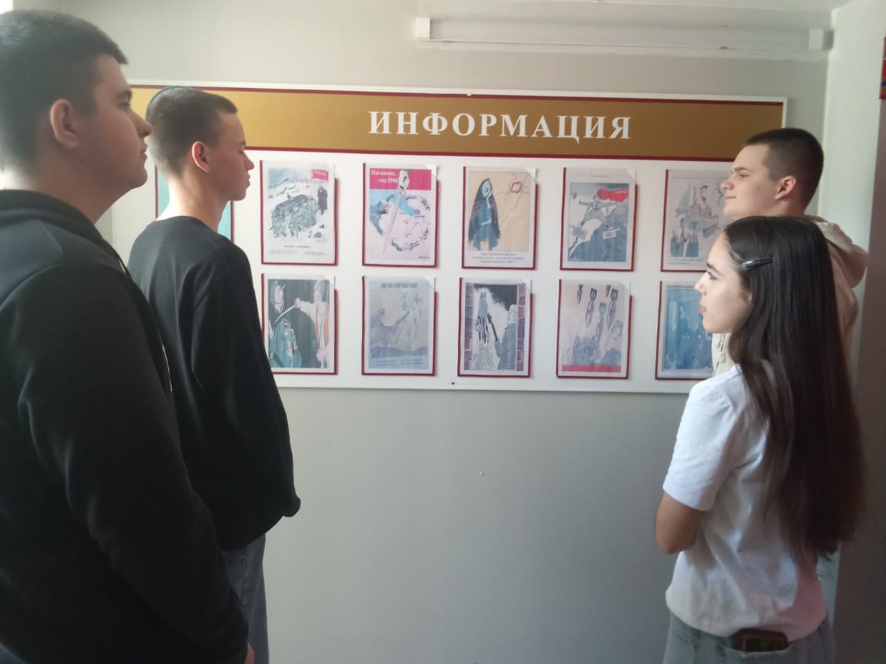 Далее состоялся просмотр экспозиции репродукций карикатур художников Кукрыни́ксы — творческого коллектива советских художников-графиков и живописцев, в который входили действительные члены Академии Художеств СССР , народные художники СССР, Герои Социалистического Труда Михаил Куприянов , Порфирий Крылов и Николай Соколов, а также работ Бориса Ефимова — советского и российского художника-графика, мастера политической карикатуры