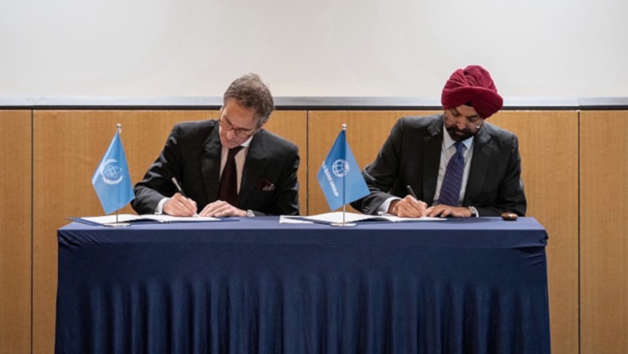 Президент Всемирного банка Аджай Банга и генеральный директор Международного агентства по атомной энергии Рафаэль Мариано Гросси подписали соглашение на мероприятии в Париже.