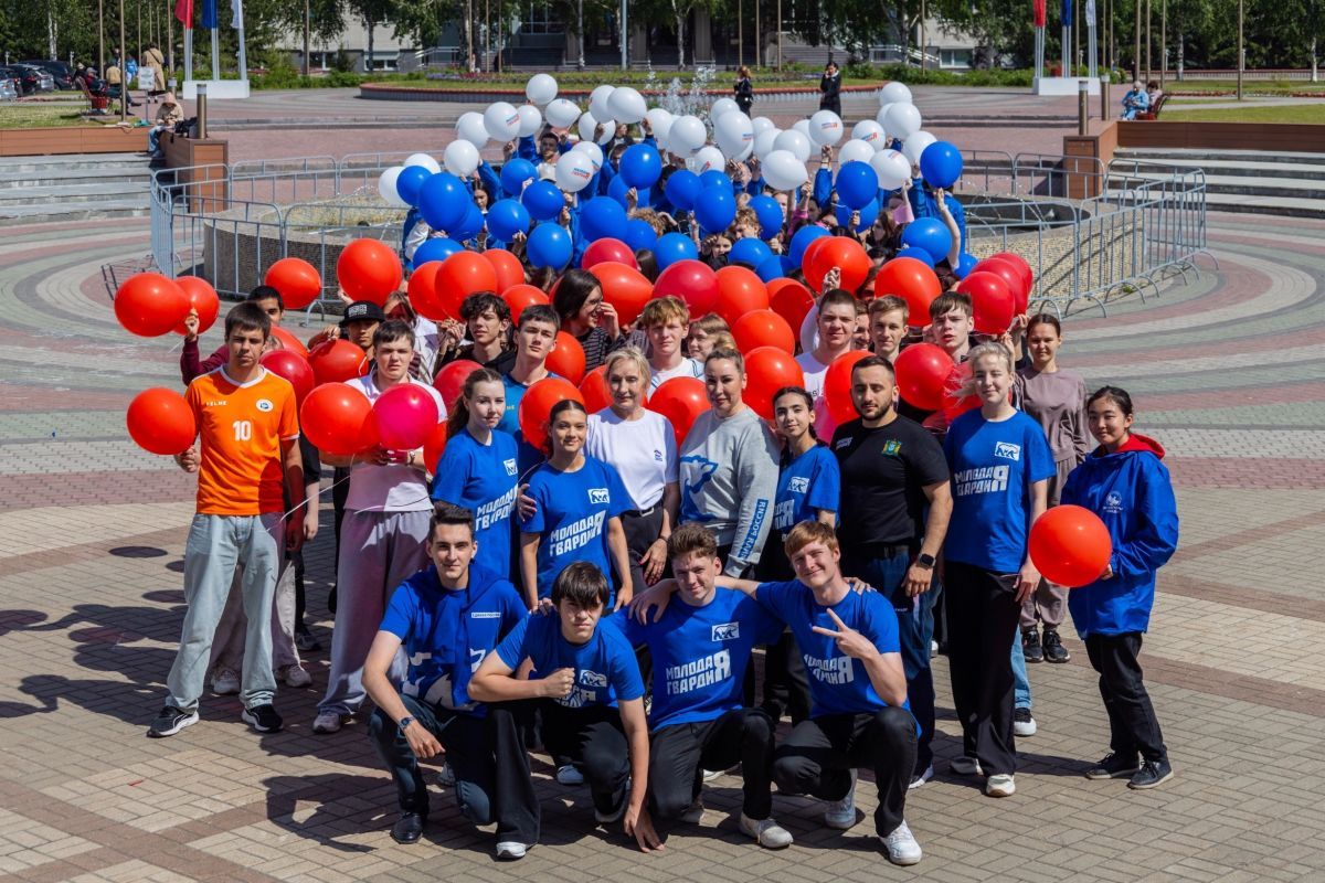 В Сургуте на площадке филармонии более 100 участников — единороссы и студенты вузов — выстроились в композицию российского флага и исполнили танец под песню «Паруса». Молодогвардейцы вручили югорчанам воздушные шары в цветах триколора.