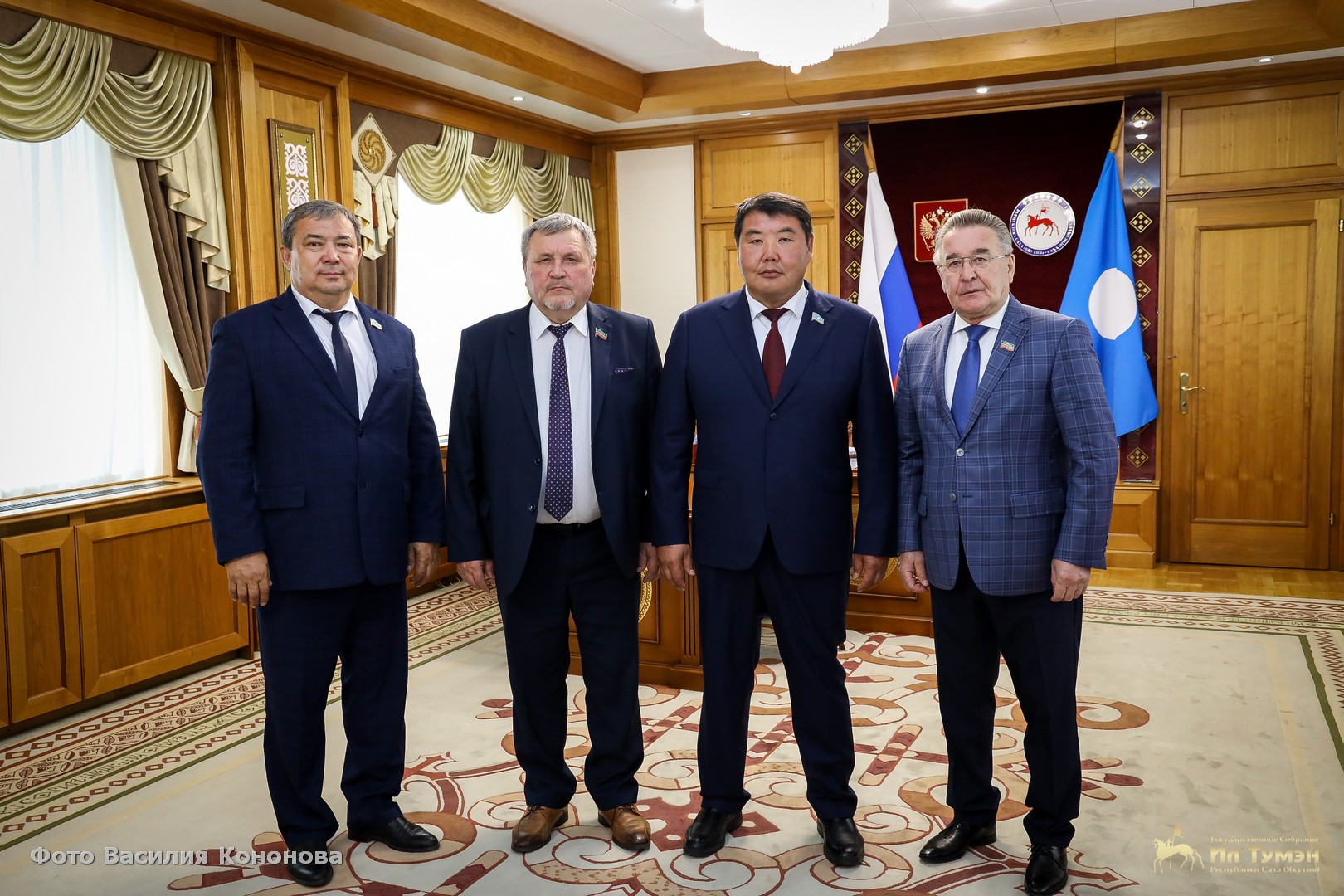 В приеме спикера Ил Тумэна Алексея Еремеева делегации Государственного Совета Республики Татарстан приняли участие председатель Комитета Государственного Совета Республики Татарстан по государственному строительству и местному самоуправлению (депутат V, VI, VII созывов) Альберт Хабибуллин, депутат Государственного Совета Республики Татарстан VI, VII созывов, Председатель Общественной организации «Союз писателей Республики Татарстан» Ркаил Зайдуллин и председатель постоянного комитета Ил Тумэна по строительству, жилищно-коммунальному хозяйству и энергетике Александр Корякин.