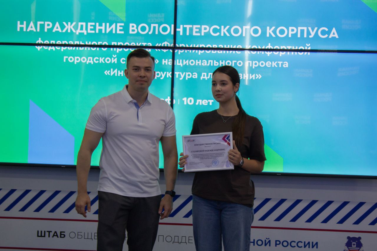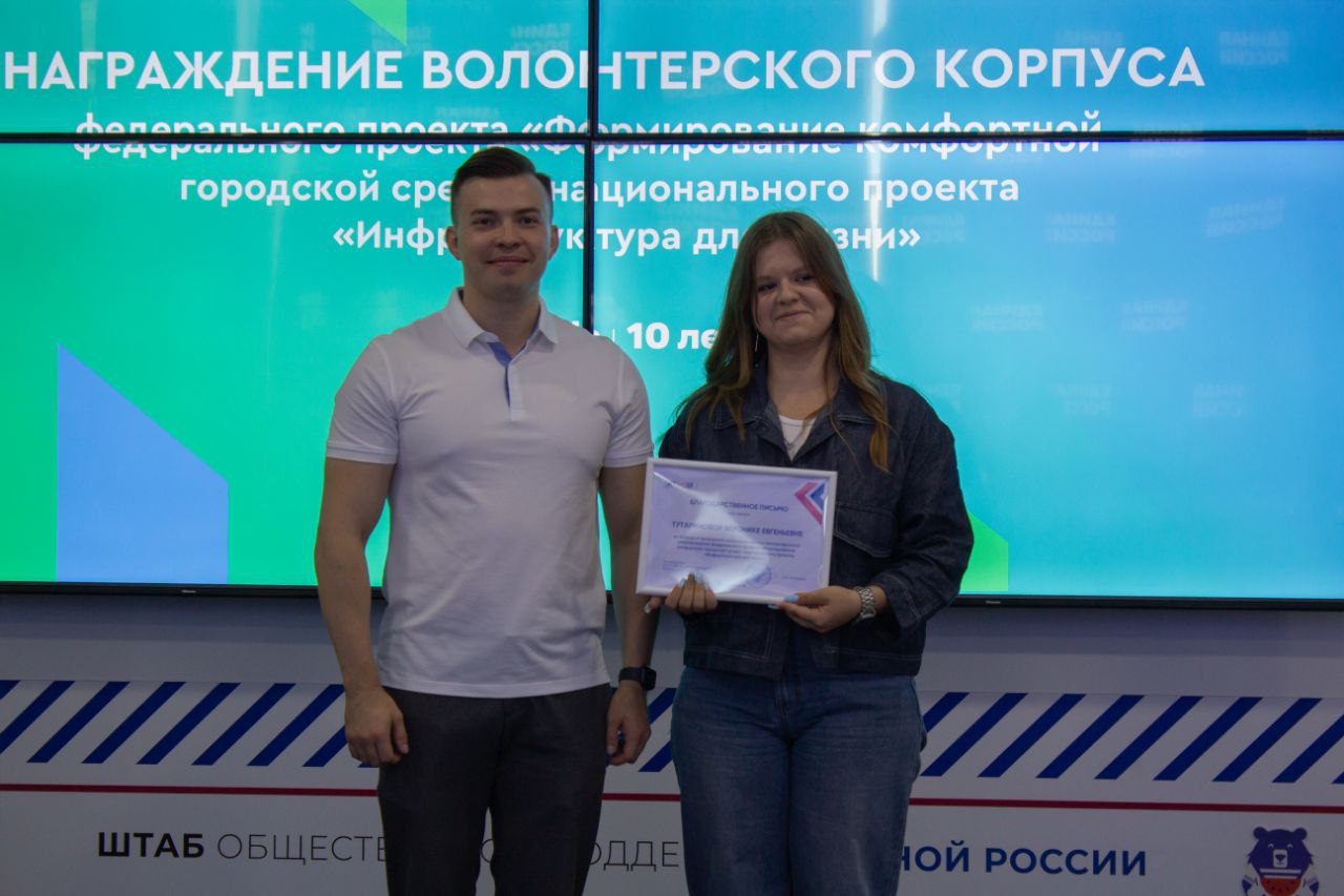 Сегодня в Штабе общественной поддержки состоялась торжественная церемония награждения волонтеров федерального проекта «Формирование комфортной городской среды» нацпроекта «Инфраструктура для жизни». Более 2400 активистов внесли значительный вклад в реализацию проекта в 13 муниципальных образованиях региона.