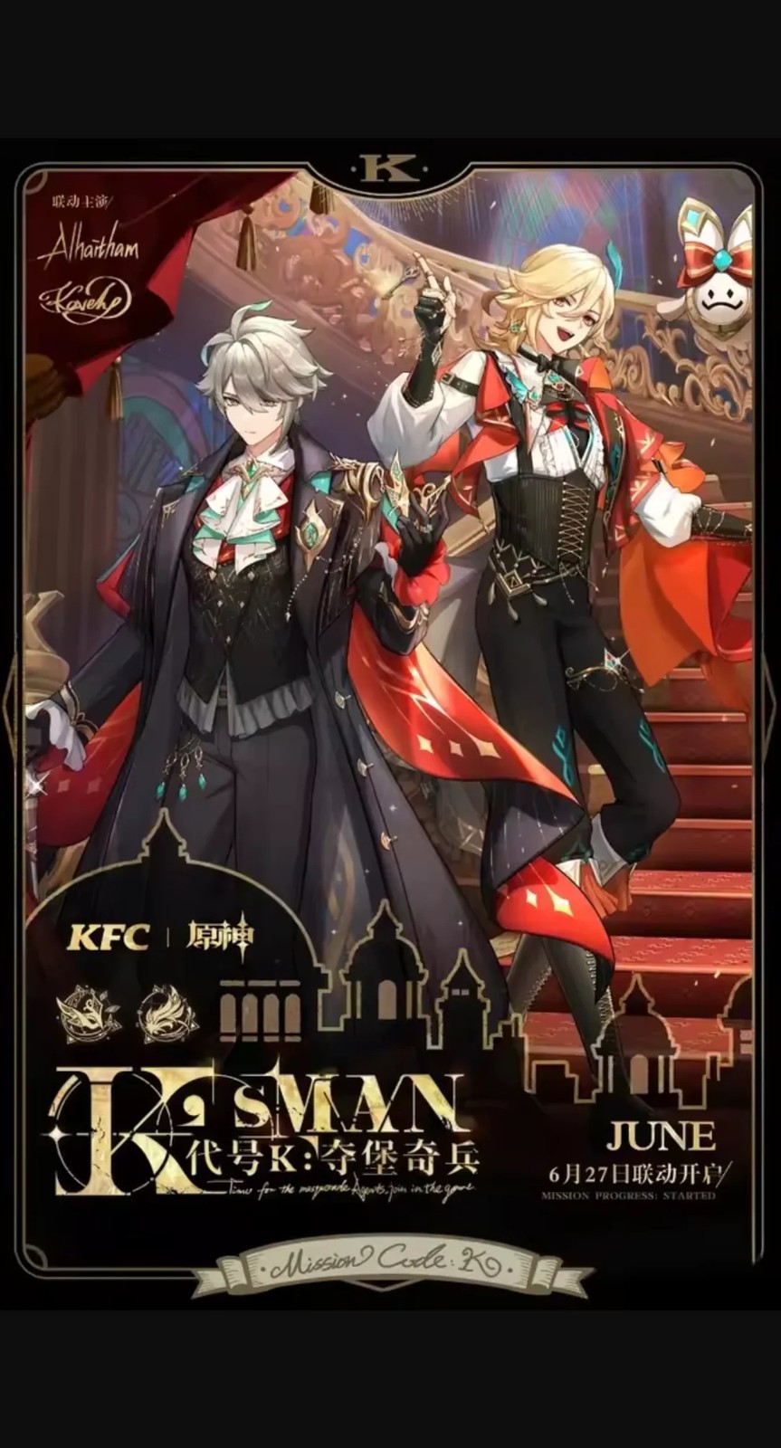 Звёздами этого коллаба Genshin Impact x KFC стали: Кавех и Аль-Хайтам — герои предстали в новых образах (не скины, лишь наряды для промо).