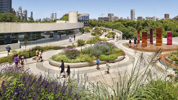 Парк площадью 4000 кв. м — главная особенность некогда брутального бетонного сооружения. К нему посетители поднимаются по пологой лестнице, которая опоясывает здание и связывает парк с городским садом. Архитекторы нью-йоркского бюро ODA снабдили объект террасами и панорамным остеклением. 13 700 кв. м займут офисы, сохранится 250 машино-мест, 2500 кв. м отдано под торговлю, рестораны и кафе.