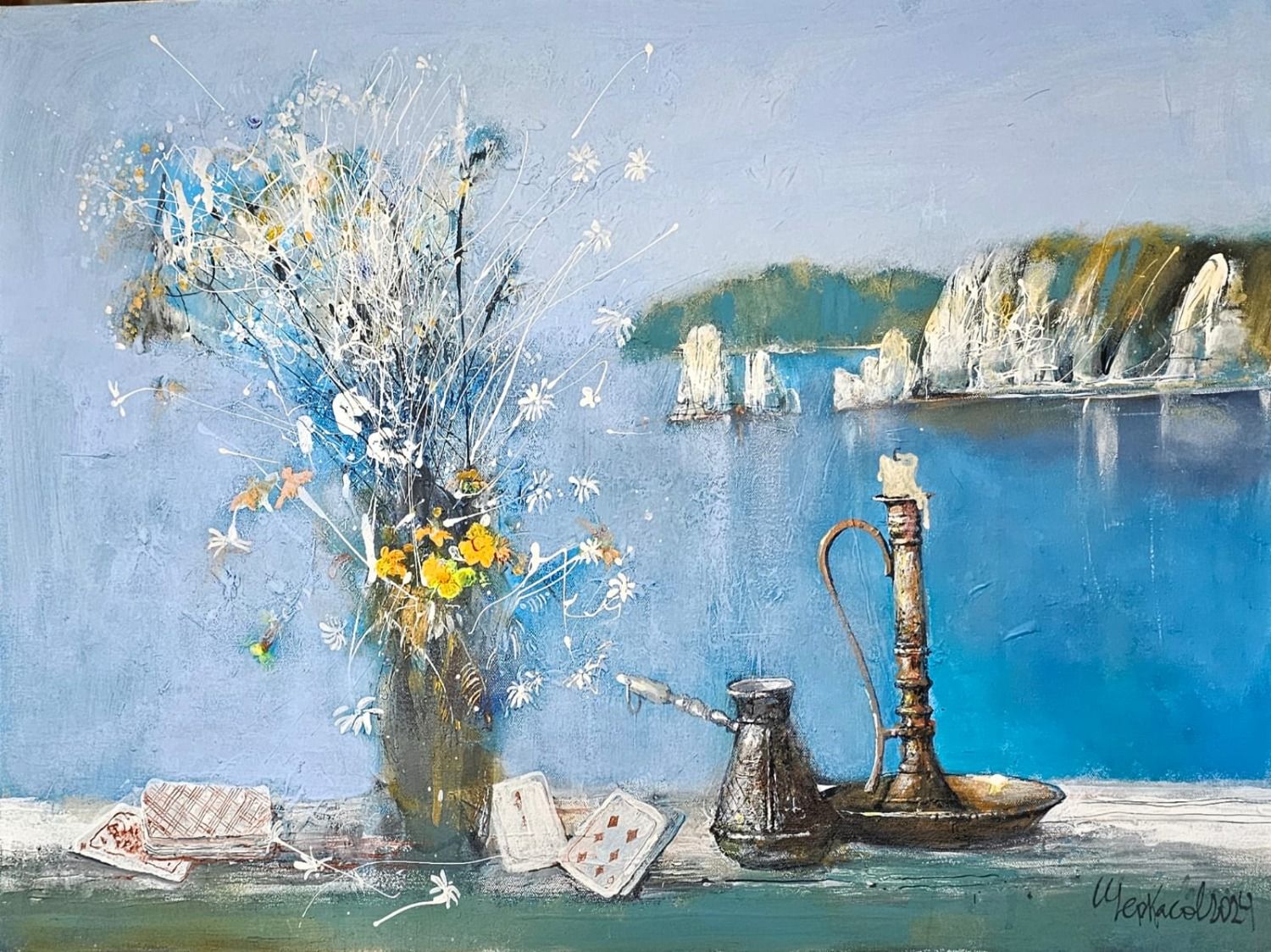 Практически все работы — традиционный для Сергея Черкасова акрил, его характерный стиль — когда на городских пейзажах словно исчезает то, что не вписывается в тот или иной уголок Владивостока, — многоэтажная застройка, торговые центры, и остаётся только красота, которую видит художник — и показывает нам. Да и натюрморты тоже «черкасовские», не спутаешь ни с чем — удивительный голубой цвет, цвет свежего воздуха и неба. То, за что творчество Сергея Михайловича любят и ценят.