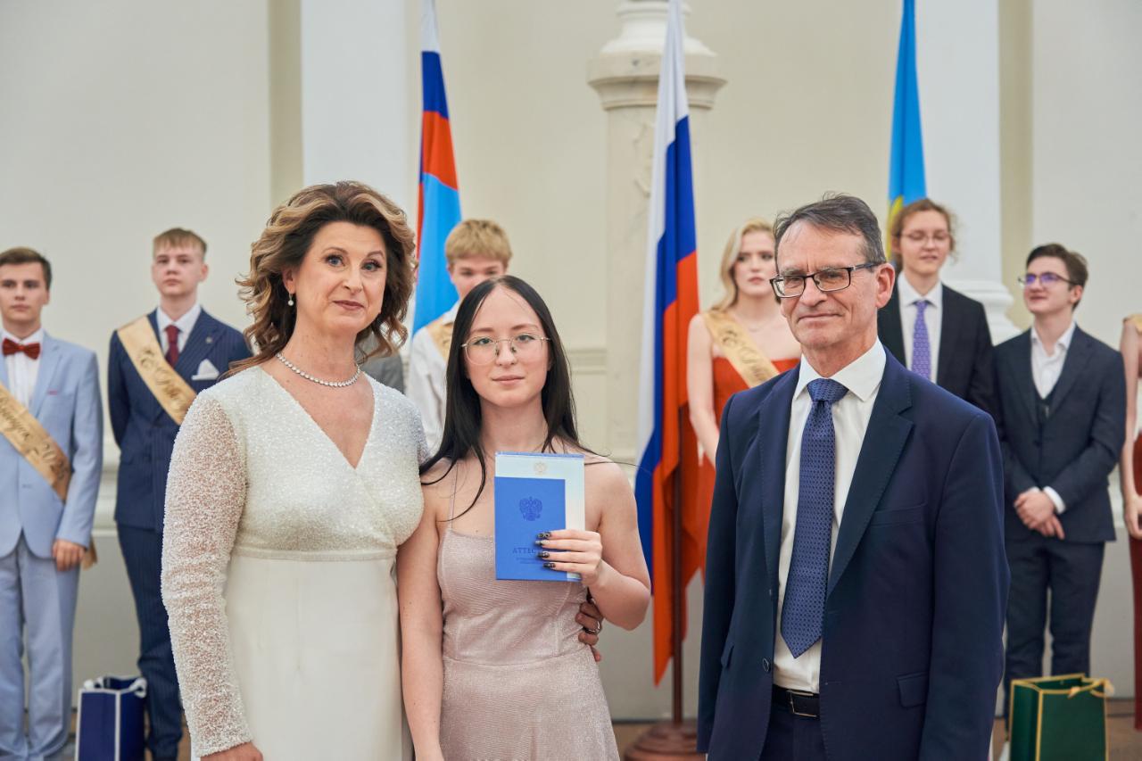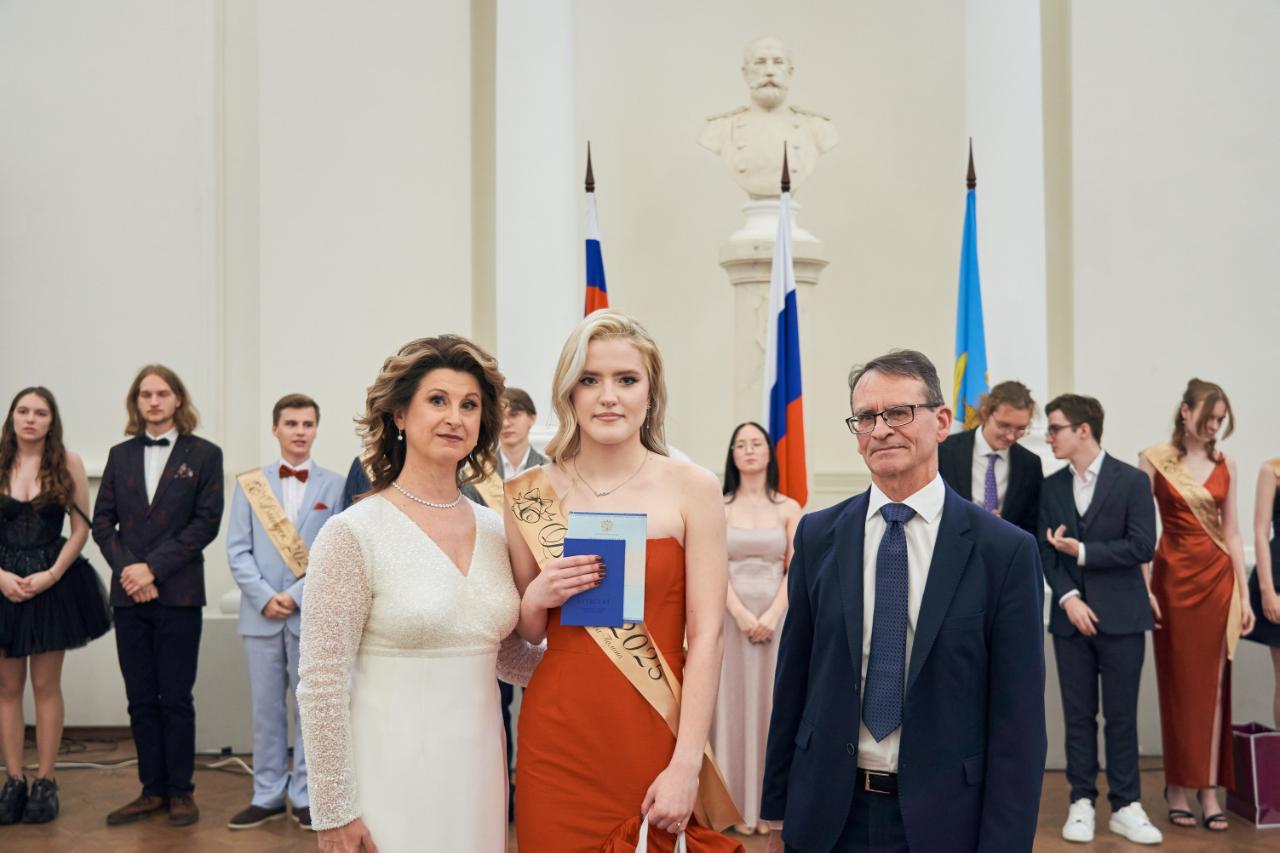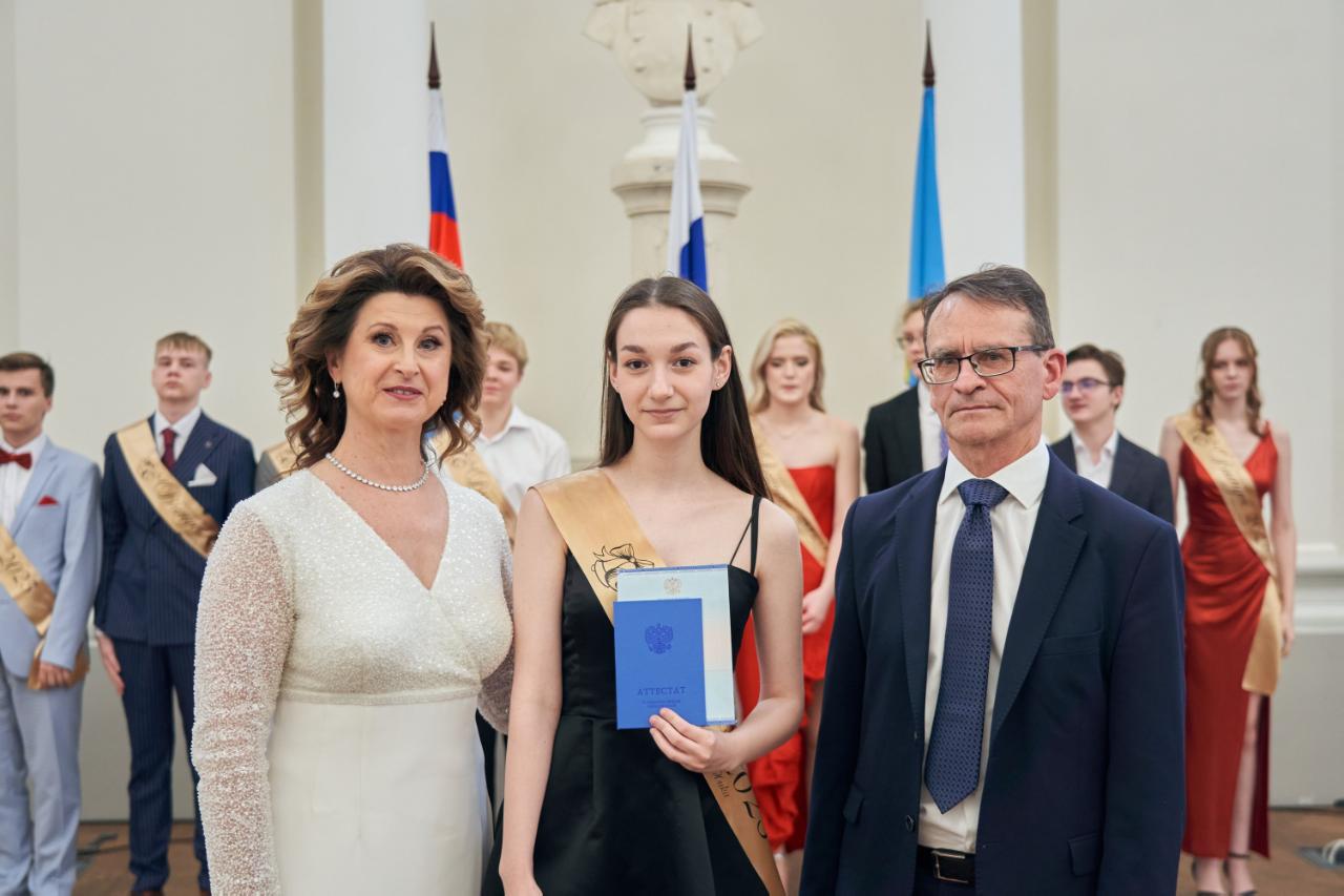 В этом году выпускниками гимназии РУТ стали 56 учеников. Девять из них получили аттестаты с отличием и медали «За особые успехи в учении» I степени, а также именные часы ректора РУТ. Четыре выпускника награждены медалями II степени. Родителям медалистов были вручены Благодарственные письма ректора РУТ — за поддержку, воспитание, трудолюбие и мудрое сопровождение своих детей на пути к знаниям.
