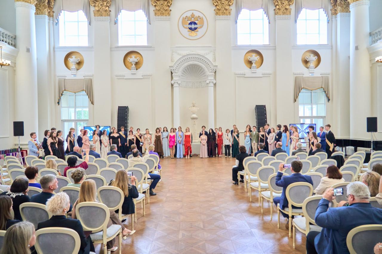 В Зале Петров Российского университета транспорта 27 июня прошёл торжественный выпускной вечер гимназии РУТ. Кроме самих одиннадцатиклассников, на мероприятии собрались родители, учителя и почётные гости.