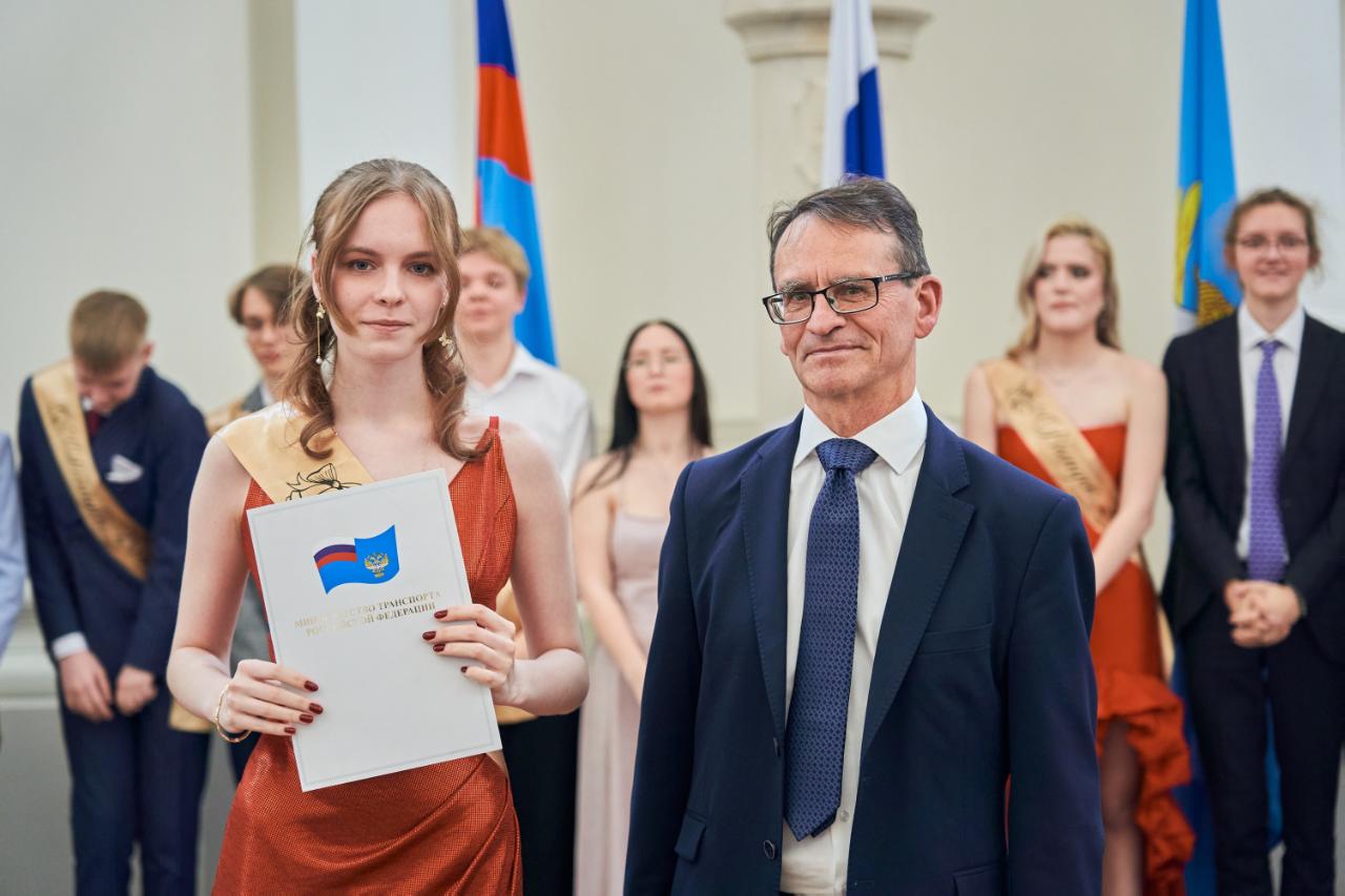 Ректор РУТ Александр Климов поздравил гимназистов и пожелал им уверенности в собственных силах, осознанности при выборе жизненного и профессионального пути. «Мы ждём вас в Университете транспорта, у нас каждый год открываются новые программы, например, «Квантовая связь» или программа подготовки пилотов гражданской авиации — единственная в Москве», — добавил он.