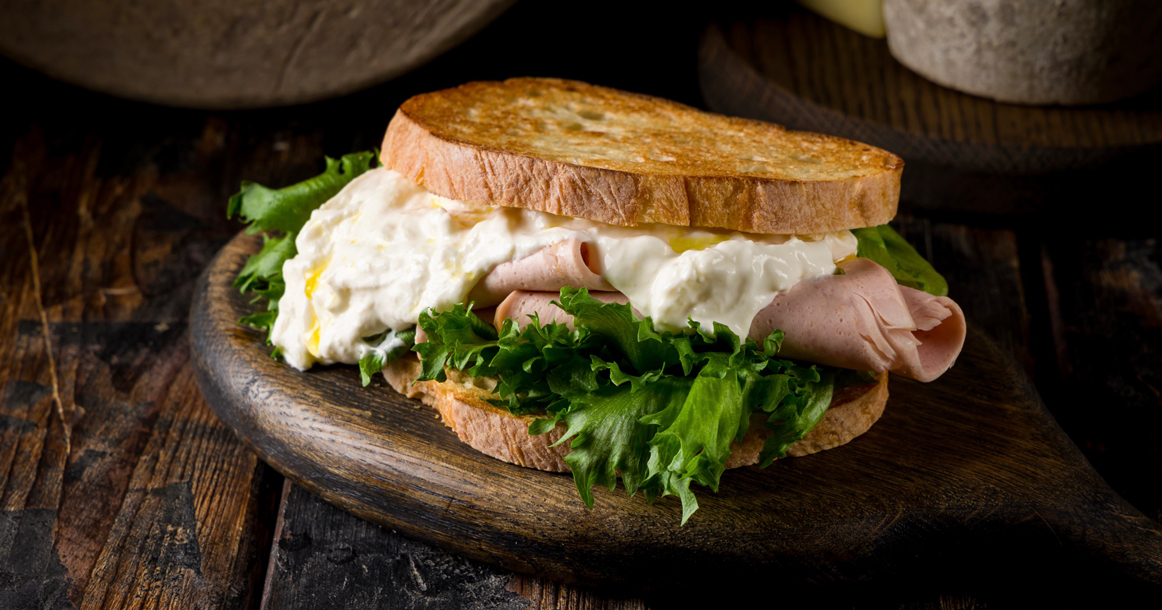 — в закрытом сэндвиче с моцареллой и прошутто (490 руб.) прячется еще и яичница — все ради сытости. Сладковатый и осторожно жгучий медово-горчичный соус обнимает начинку со всех сторон;