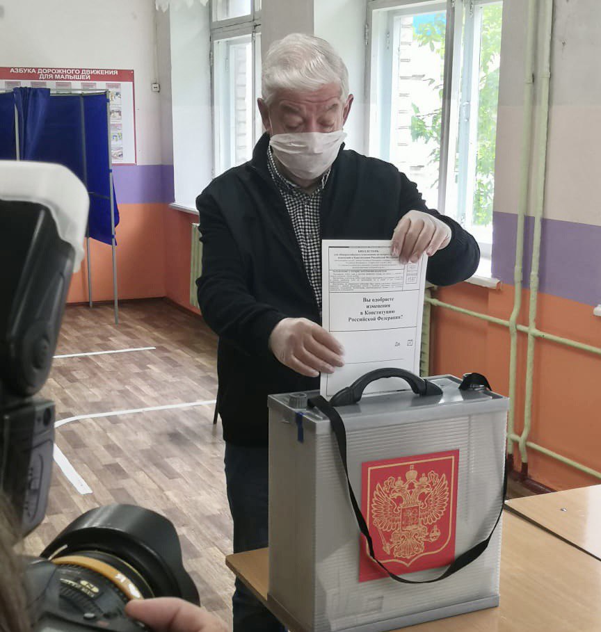 На фото: Александр Левин голосует за поправки к Конституции РФ, 27 июня 2020 г.