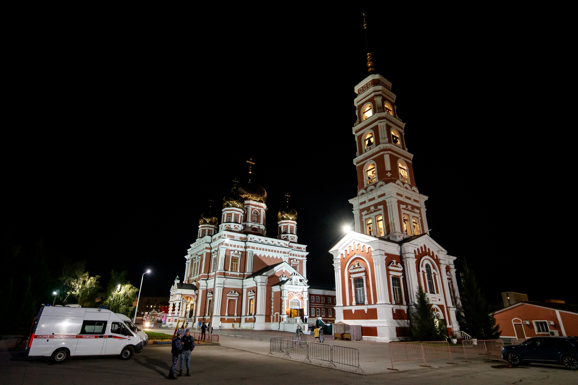 Духовенство и прихожане ожидали прибытия святыни в Покровском соборе, молясь за ночной Божественной литургией, которую совершил митрополит Саратовский и Вольский Игнатий.